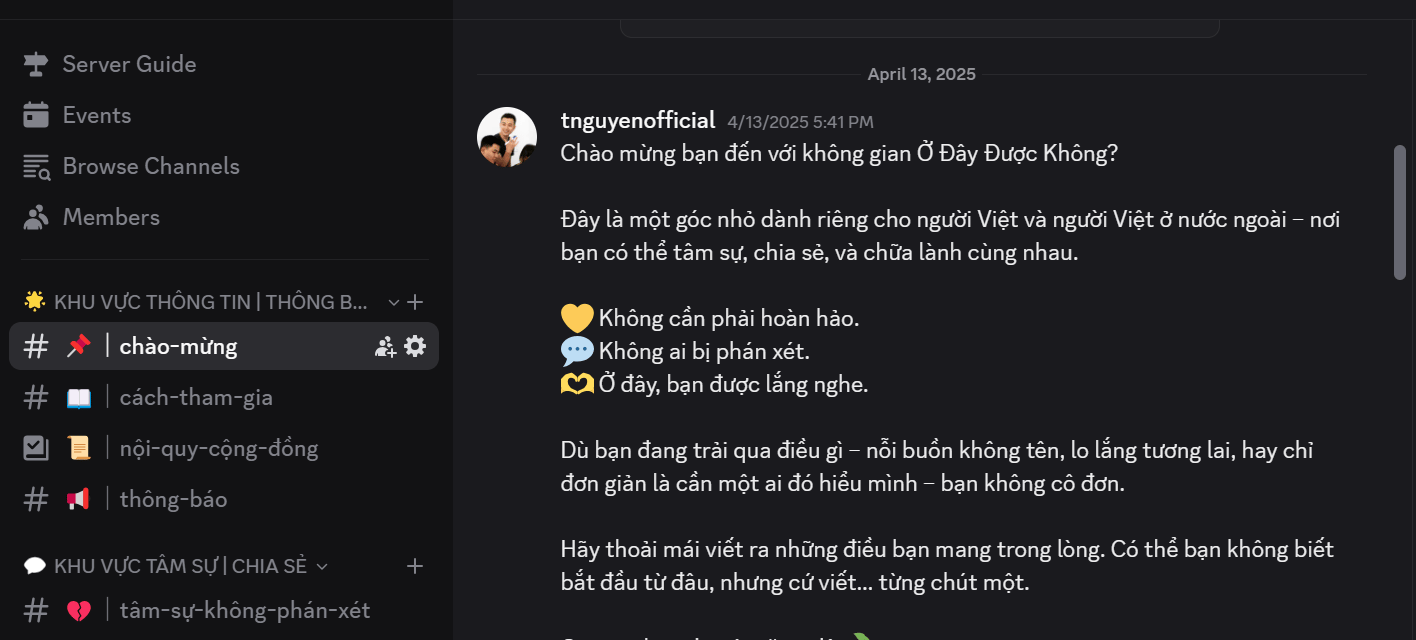 ... is a warm and non-judgmental space for Vietnamese and Vietnamese overseas (Việt Kiều) to share their stories, emotions, and questions — completely free from shame, gossip, or pressure. Whether you're celebrating a win, carrying a worry, or just need a moment to be yourself, you belong here. 🫶